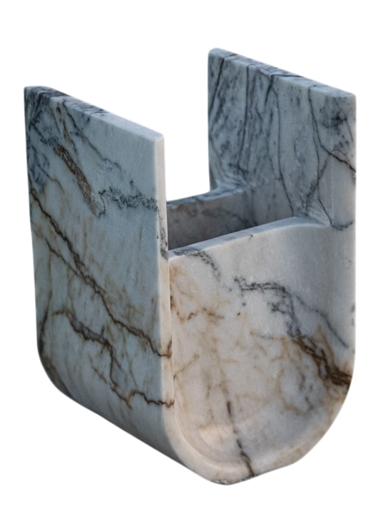 Sculpted from richly veined marble, its bold U-shaped design commands attention from every angle.
