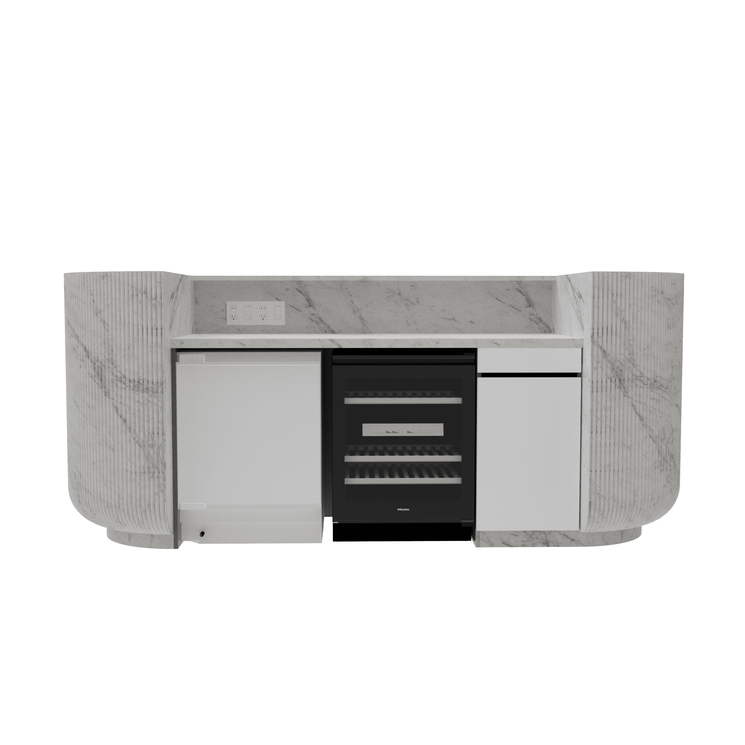 Wrapped in precision-cut marble with fluted side panels and clean lines,