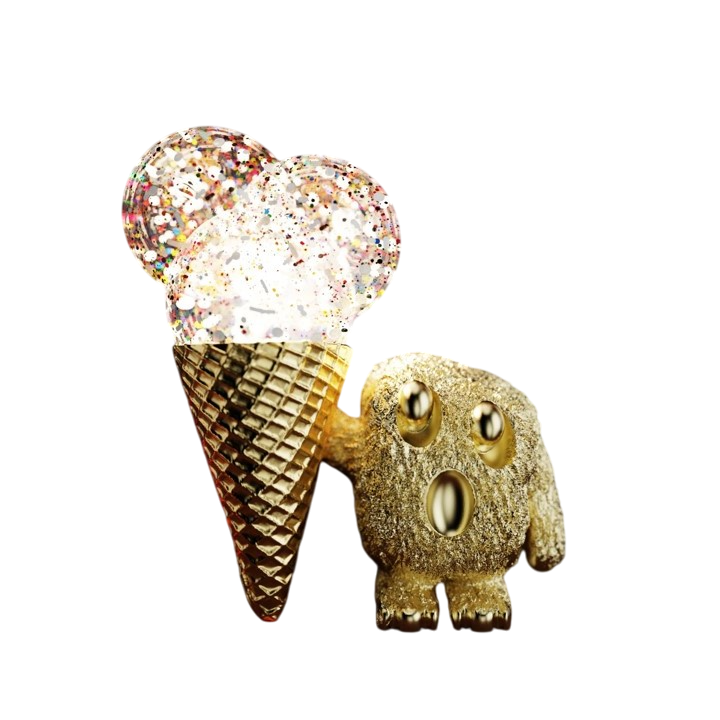 With a glittering cone, scoops that sparkle, and a bold little character gripping it like treasure, this piece turns heads and melts hearts.