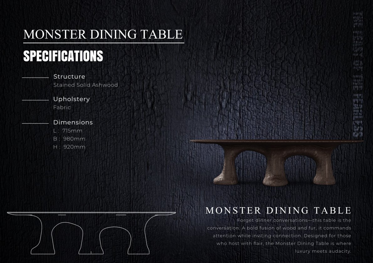 Sculpted from rich wood and elevated with fearless design, the Monster Dining Table doesn’t just anchor a room—it defines it.