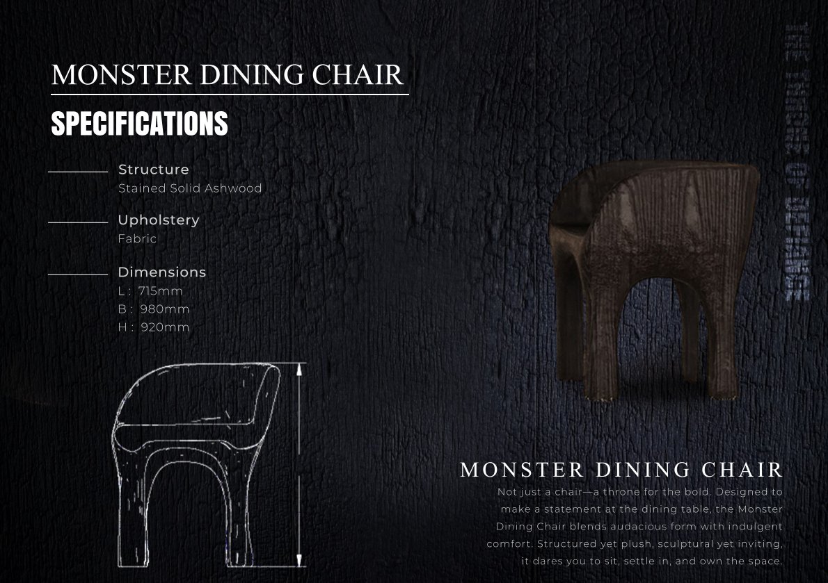 The Monster Dining Chair commands the room with bold curves, rich velvet, and sculpted form that radiates confidence.